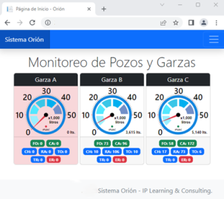 El Sistema de Monitoreo "Orión" permite visualizar uno o más Sistemas de Despacho de Agua ubicados en diferentes sitios en tiempo real y puede ser visualizado desde cualquier navegador web moderno como Chrome, Microsoft Edge, Firefox, etc.